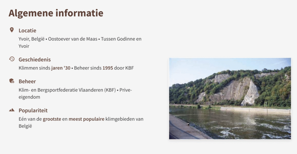 Meta Beschrijving: Ontdek Yvoir klimmassief: 160 routes, multipitch opties en praktische tips. Alles over parkeren, niveaus en veiligheid in België’s populaire plaatklimgebied.